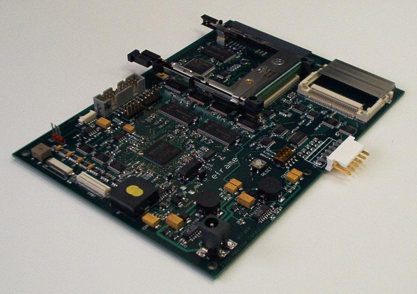 EframeAn inexpensive single board ARM 920 based platform with integrated LCD and touch-switch support. Supports linux and wireless networking via PCMCIA. Flash file system on CF card. Based on the Sharp LH7A400 ARM 920 "system on a chip" processor, the eframe provides an complete single board solution for running the Linux operating system with a LCD display. Designed for low power applications with no cooling, the system can operate with a current draw as low as 200ma. An expansion connector allows additional peripherals such as ethernet, audio, USB function, IR and serial. Created as a simple wireless display device, this board is suitable for many different embedded applications. The Eframe platform has the following features: